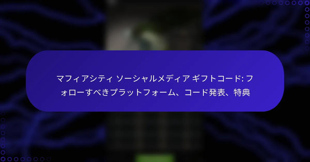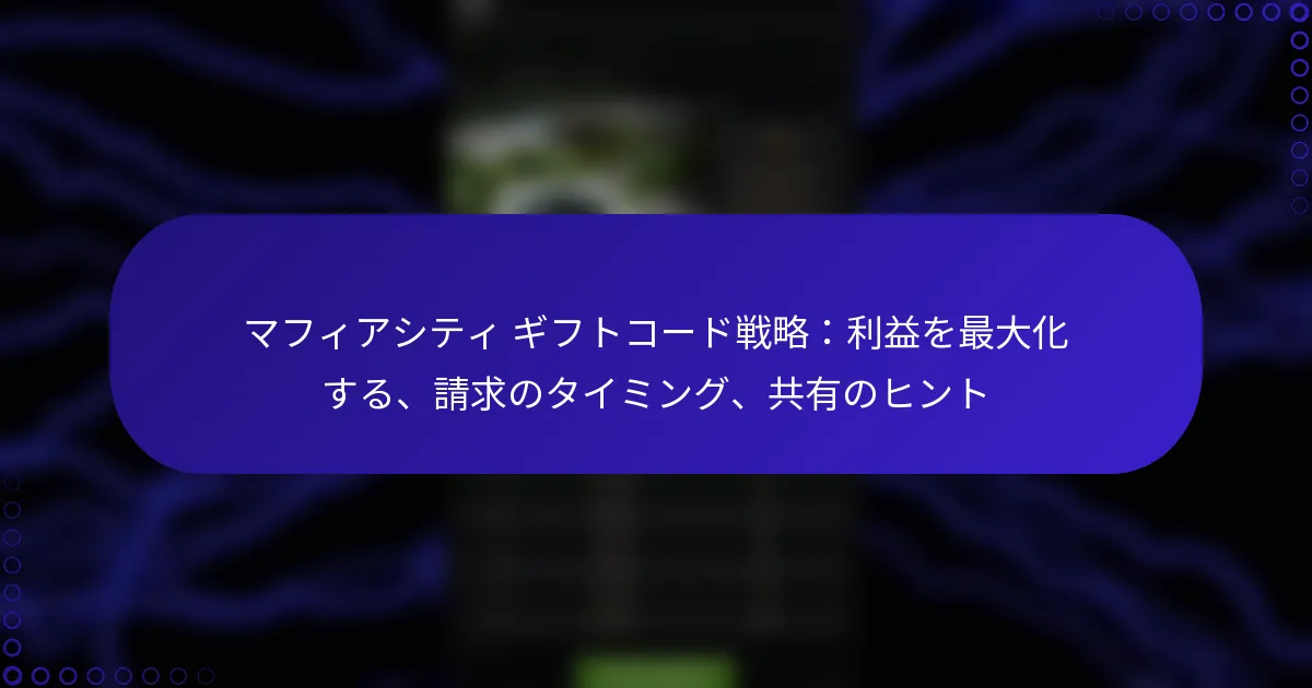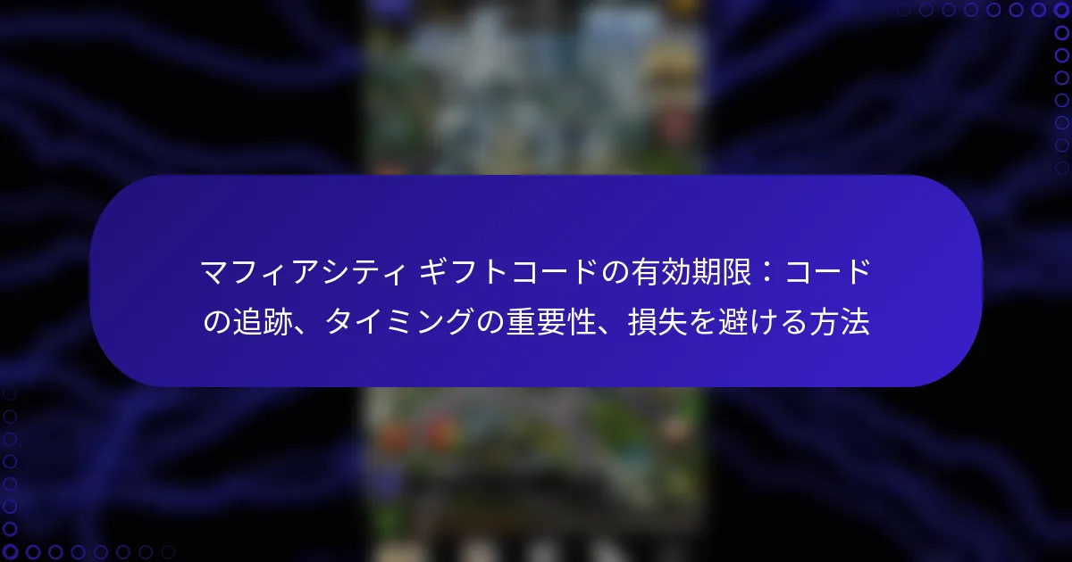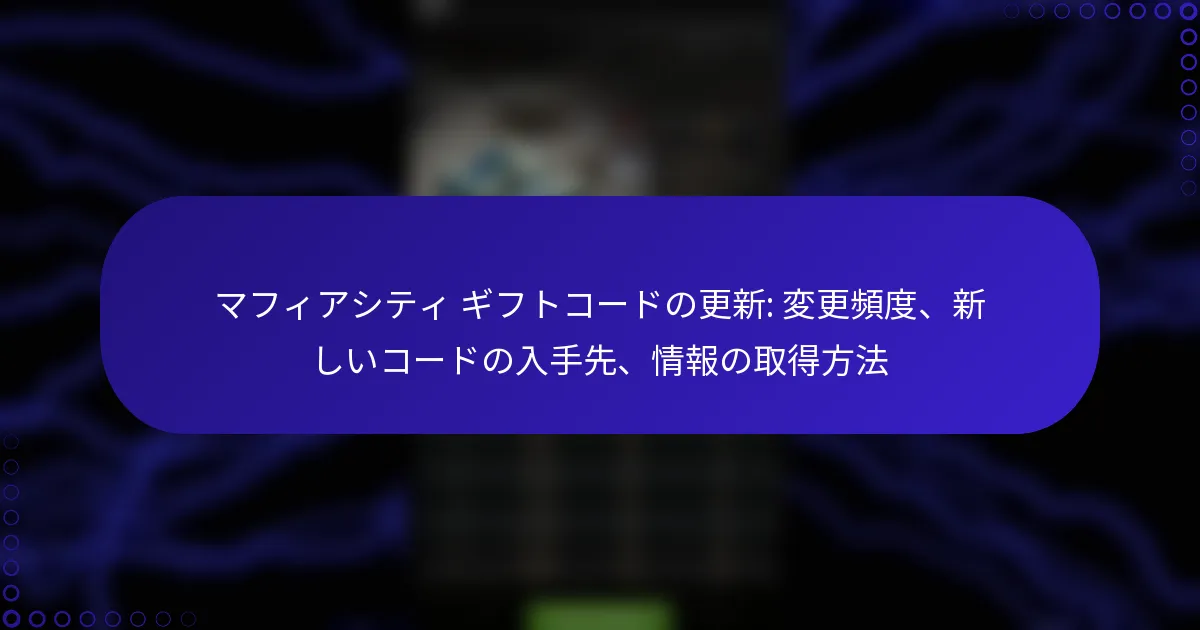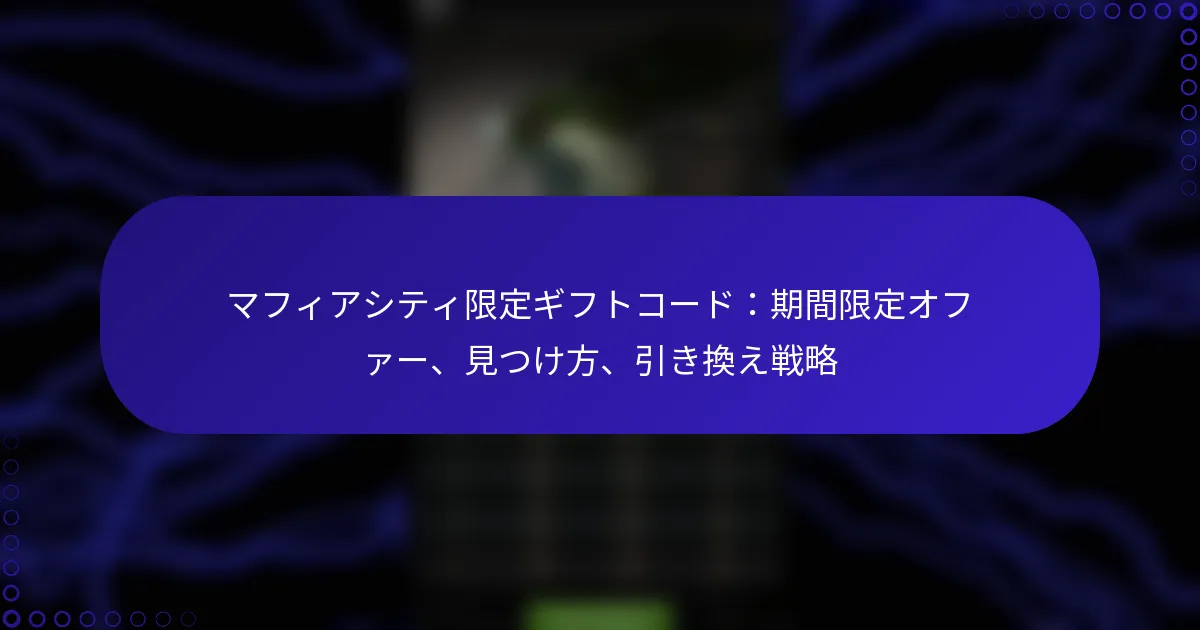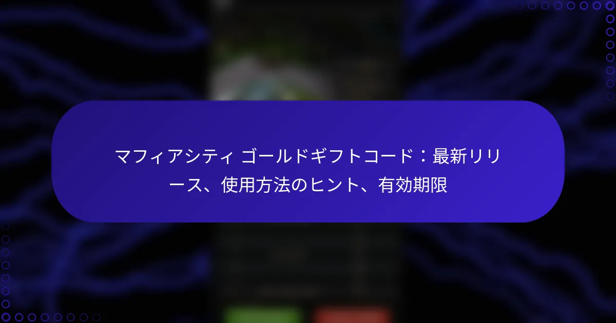 最新のマフィアシティのゴールドギフトコードは、プレイヤーに貴重なゲーム内通貨を提供することで、ゲーム体験を向上させるチャンスを提供します。これらのコードは、ゲーム内の特定の手順を通じて引き換えることができ、プレイヤーはキャラクターをアップグレードしたり、必需品を購入したりすることができます。ただし、これらのコードには有効期限があることが多いため、リソースを最大限に活用するために、迅速に引き換えることが重要です。 最新のマフィアシティのゴールドギフトコードとは? 最新のマフィアシティのゴールドギフトコードは、プレイヤーに貴重なゲーム内通貨を提供し、ゲーム体験を向上させます。これらのコードは定期的にリリースされ、キャラクターのアップグレードやアイテムの購入に必要なゴールドと引き換えることができます。 マフィアシティの現在の有効なギフトコード 現在、マフィアシティで有効なギフトコードは以下の通りです: GOLD2023 – 500ゴールドと引き換え MAFIAFAN – 300ゴールドと引き換え NEWYEAR2023 – 1000ゴールドと引き換え これらのコードは期限切れになる前にゲーム内で入力して、報酬を最大限に活用してください。有効期限は数日から数週間までさまざまですので、注意してください。 ギフトコードの最近のリリースと更新 最近、開発者はプレイヤーコミュニティを活性化するために新しいギフトコードを積極的にリリースしています。コードは、祝日やゲームの記念日などの特別なイベントやプロモーションに関連付けられることがよくあります。 例えば、最近の新年プロモーションでは、NEWYEAR2023コードが導入され、大量のゴールドを提供しています。プレイヤーは、これらの機会を逃さないように定期的に更新をチェックするべきです。 新しいギフトコードを定期的に見つける方法 マフィアシティの新しいギフトコードを継続的に見つけるために、プレイヤーはいくつかの戦略を採用できます。一つの効果的な方法は、公式ゲームウェブサイトやコードが発表されることが多いソーシャルメディアチャンネルを定期的にチェックすることです。 さらに、ゲームフォーラムやニュースレターに登録することで、新しいリリースに関するタイムリーな更新を受け取ることができます。コミュニティに参加することで、広く宣伝されていないコードに関する洞察を得ることもできます。 コードを共有するためのコミュニティソース マフィアシティのコミュニティは、ギフトコードを共有するための素晴らしいリソースです。プレイヤーは、Reddit、Discord、Facebookグループなどのプラットフォームでアクティブなコードを投稿することがよくあります。 これらのコミュニティに参加することで、プレイヤーはコードやヒントを交換し、最新のオファーから全員が利益を得られるようになります。信頼できないソースには注意してください。中には期限切れや無効なコードを共有するものもあります。 公式発表とイベント ギフトコードに関する公式発表は、通常、ゲームのソーシャルメディアページやゲーム内通知を通じて行われます。プレイヤーは、新しいコードやイベントに関する最新情報を得るために通知を有効にしておくべきです。 季節の祝いやゲームのアップデートなどのイベントは、独占的なコードを伴うことがよくあります。これらのイベントに参加することで、新しいコードの機会が得られるだけでなく、全体的なゲーム体験も向上します。 マフィアシティのゴールドギフトコードはどのように使用できますか? マフィアシティのゴールドギフトコードを使用することで、ゲーム内通貨を受け取り、ゲームプレイ体験を向上させることができます。これらのコードは、ゲーム内の特定の手順を通じて引き換えることができ、プレイヤーはリソースを効果的に最大化できます。 ギフトコードを引き換えるためのステップバイステップガイド マフィアシティでギフトコードを引き換えるには、以下の手順に従ってください: デバイスでマフィアシティのゲームを起動します。 通常はメインインターフェースにある設定メニューに移動します。 「ギフトコード」または「コードを引き換える」オプションを探します。 コードが表示されている通りに正確に入力し、タイプミスがないことを確認します。 入力を確認し、コードが引き換えられたことを示す成功メッセージをチェックします。 ゲーム内でギフトコードを入力する場所 ギフトコードは、マフィアシティのゲームの設定セクションに入力できます。このエリアは通常、メインメニューからアクセス可能で、コード入力のための簡単なインターフェースを提供します。「ギフトコード」オプションを見つけたら、指定されたフィールドにコードを直接入力できます。 ギフトコードを使用するための一般的な前提条件 ギフトコードを引き換える前に、ゲームアカウントが正常であり、アクティブなアカ